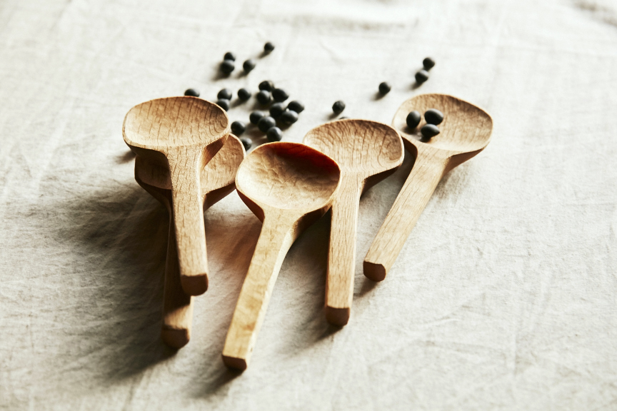左右非対称なカタチがとぼけていてかわいい、ヘラのような匙のような… 我が家では豆をすくうのに使っています。